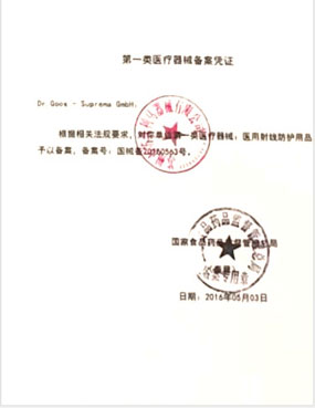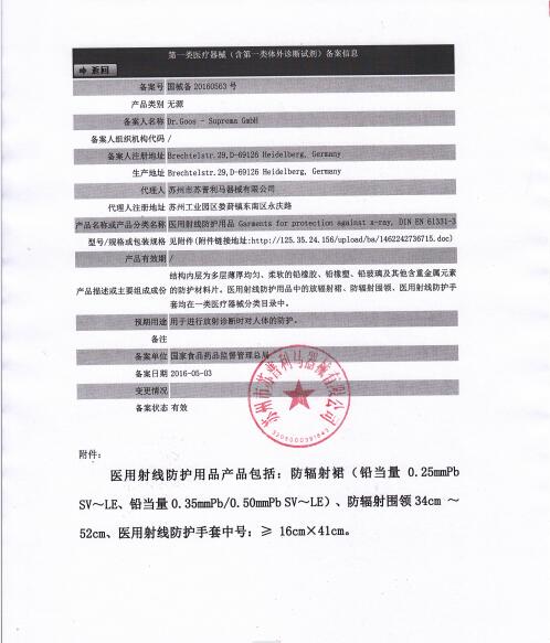 蘇州市蘇普利馬器械有限公司是專業(yè)從事醫(yī)用X射線防護(hù)系列用品、裝置、代理德國Dr.Goos-Suprema Gmbh.顧斯博士-蘇普利馬有限公司生產(chǎn)的原裝進(jìn)口鉛衣及醫(yī)用觀片燈的生產(chǎn)銷售企業(yè).生產(chǎn)的X射線防護(hù)圍裙均來自美國SHIELDING公司的最新型超薄型防護(hù)材料,,具有防護(hù)性能可靠、穿戴舒適、輕便柔軟、操作自如等諸多優(yōu)點.產(chǎn)品均通過相關(guān)X射線檢測機構(gòu)的檢測,達(dá)到產(chǎn)品標(biāo)準(zhǔn)的要求.X射線醫(yī)用膠片觀察燈。是采用全LFD燈光技術(shù)。具有重量輕,光源均勻,亮度高,無頻閃,不變型,使用壽命長等特點。均取得了生產(chǎn)許可及醫(yī)查看更多>>